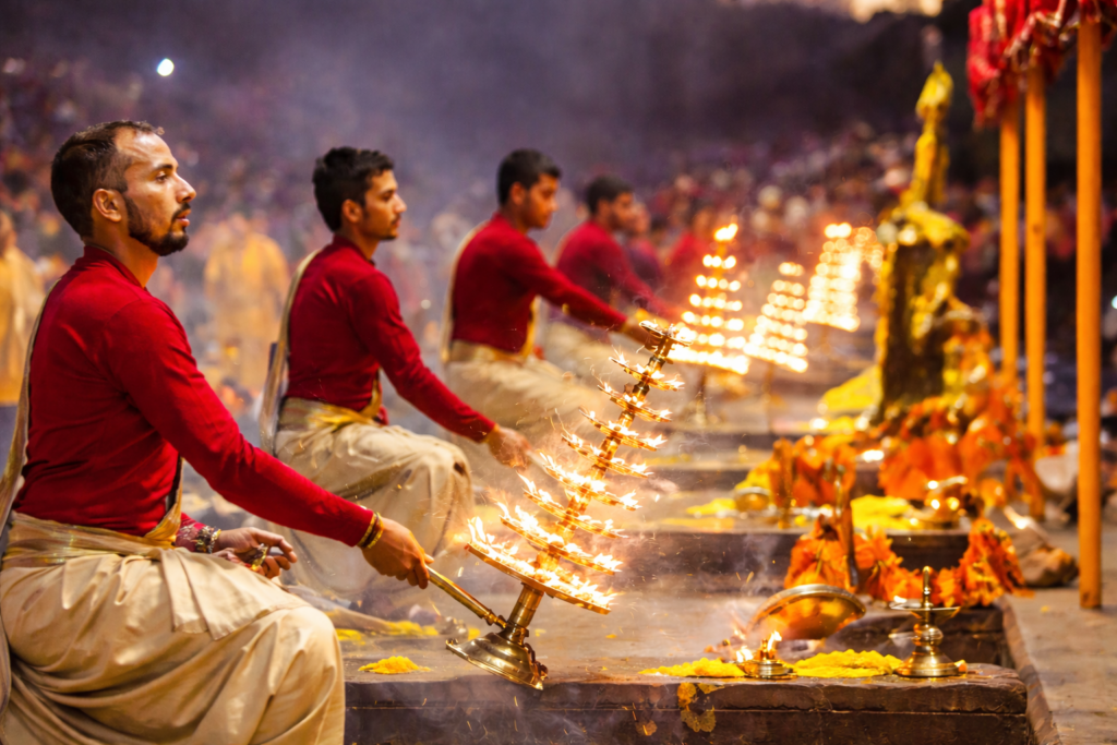 The Ganga Aarti in Varanasi is one of the most sacred and mesmerizing rituals performed every evening on the ghats of the River Ganga, primarily at Dashashwamedh Ghat. As the sun sets, priests dressed in traditional attire perform a beautifully synchronized ceremony using large brass lamps, incense, conch shells, and sacred chants. The ritual is dedicated to Goddess Ganga, symbolizing gratitude, devotion, and the spiritual connection between the river and the people.T he ceremony, filling the atmosphere with divine energy, the sound of bells, hymns, and the glowing light of flames reflecting over the river. Devotees often light diyas and let float on the creating a breathtaking sight. The Ganga Aarti represents faith, heritage, and the timeless spiritual essence of Varanasi, making it an unforgettable experience for everyone who witnesses it.What makes the Ganga Aarti even more special is the deep emotion and belief attached to it. People from all walks of life—saints, pilgrims, locals, travelers, and tourists—stand together in silence, devotion,