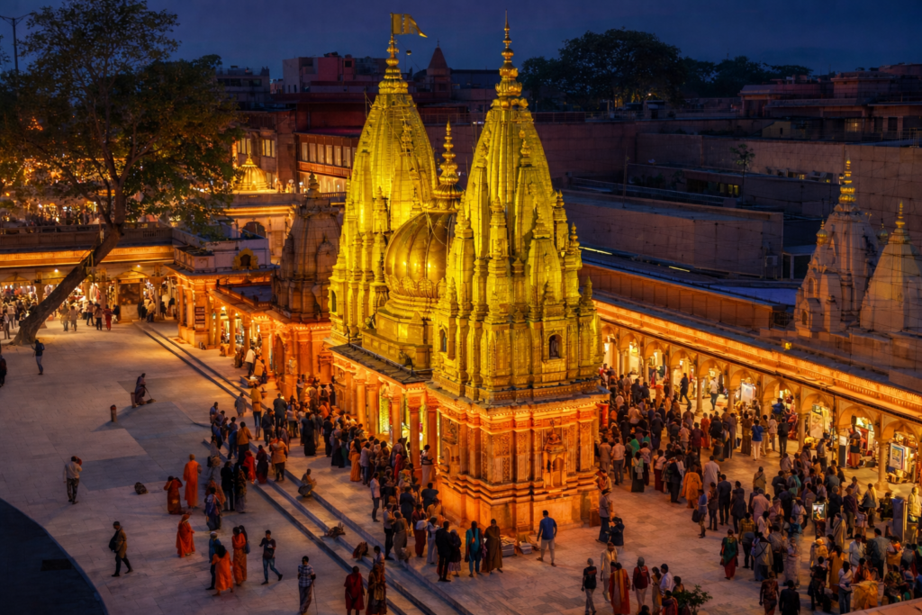The Kashi Vishwanath Temple is one of the most revered and sacred temples in India, dedicated to Lord Shiva. Located in the heart of Varanasi, it is one of the twelve Jyotirlingas, making it spiritually significant for millions of devotees. The temple symbolizes faith, devotion, and the belief in salvation (Moksha), as many Hindus believe that a visit here grants liberation from the cycle of life and death.The temple’s stunning architecture, golden domes, and sacred sanctum create a deeply divine atmosphere. Devotees from across the world visit to offer prayers, perform rituals, and seek blessings, especially during festivals like Maha Shivaratri. Surrounded by narrow ancient lanes, vibrant marketplaces, and continuous chants of “Har Har Mahadev,” the temple radiates powerful spiritual energy. Whether for religious devotion, cultural experience, or inner peace, Kashi Vishwanath Temple stands as the soul and pride of Varanasi, preserving centuries of tradition, faith, and divine heritage.